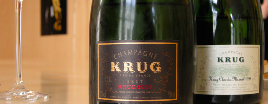 Fiz uma peregrinação a Reims há alguns anos e visitei a Krug onde entrevistei a enóloga Julie Cavil. Na ocasião provamos três jóias da empresa, o primeiro foi o Krug Clos du Mesnil 1998, o mais elegante, a pura expressão do vinhedo mais famoso da Champagne, o Clos du Mesnil. O segundo o Krug Vintage 1998, o mais intenso, uma mistura dos melhores vinhos desta grande safra. E finalmente o Krug Grad Cuvée, o mais complexo, uma mistura de vinhedos e safras. Para elaborar o Grande Cuvée são feitas inúmeras provas por uma equipe.